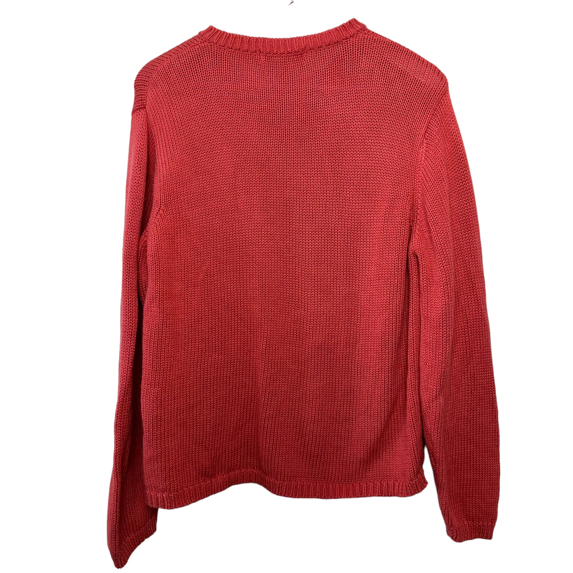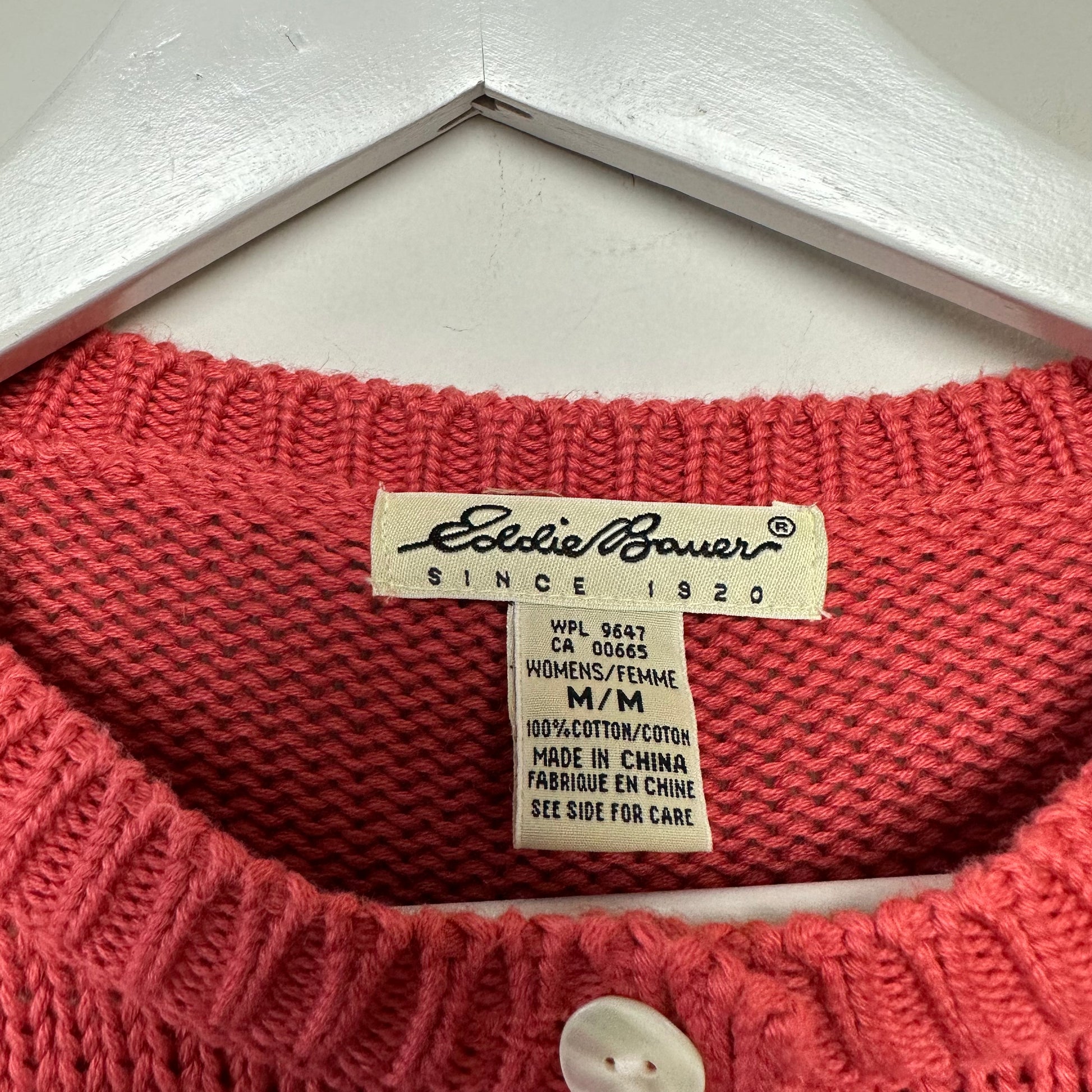 Eddie Bauer Chunky Knit Cardigan Sweater Floral Pink Coral Cotton Medium