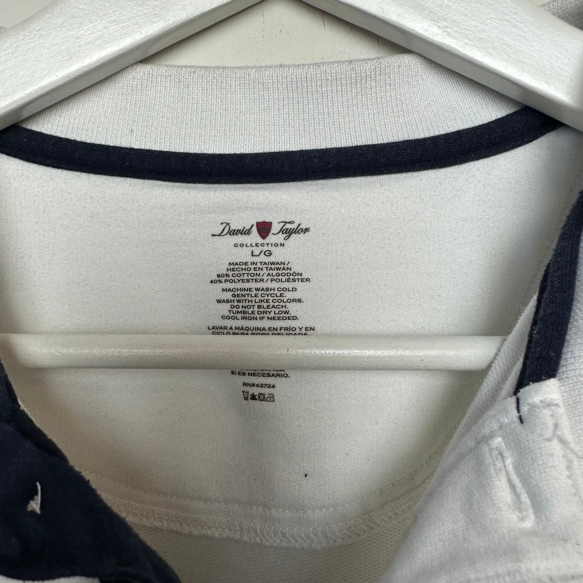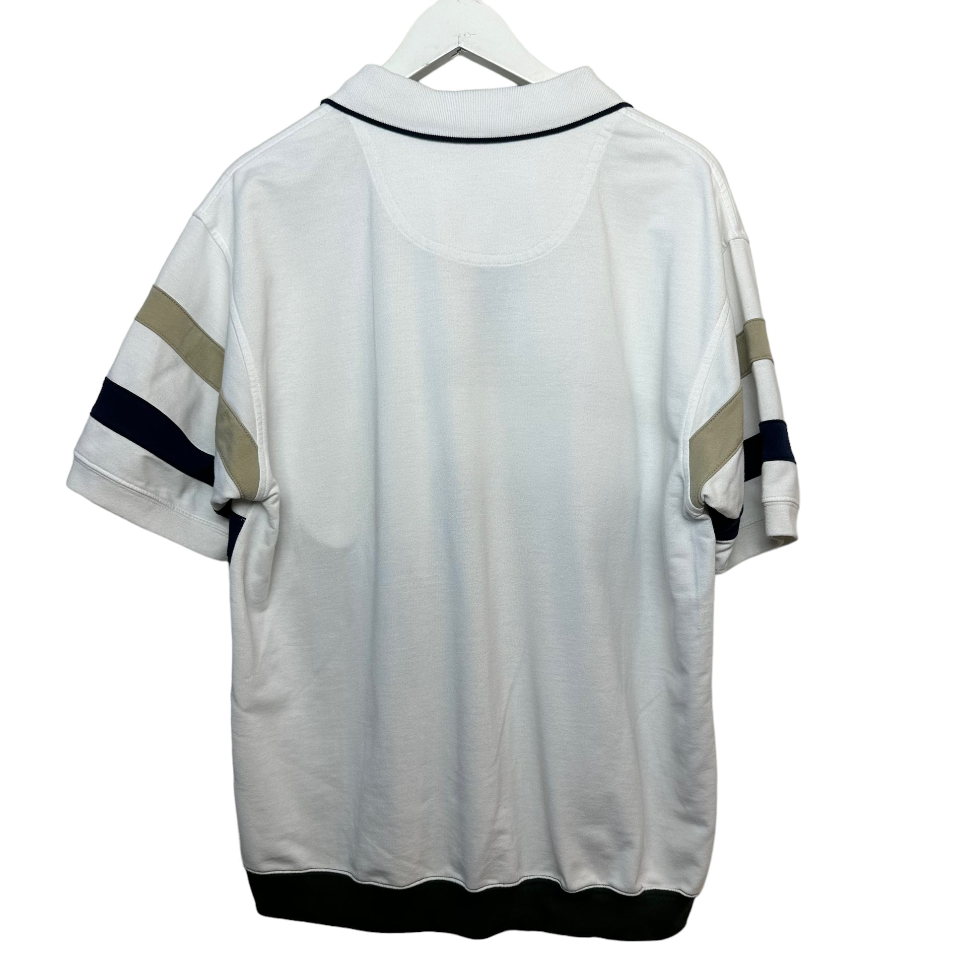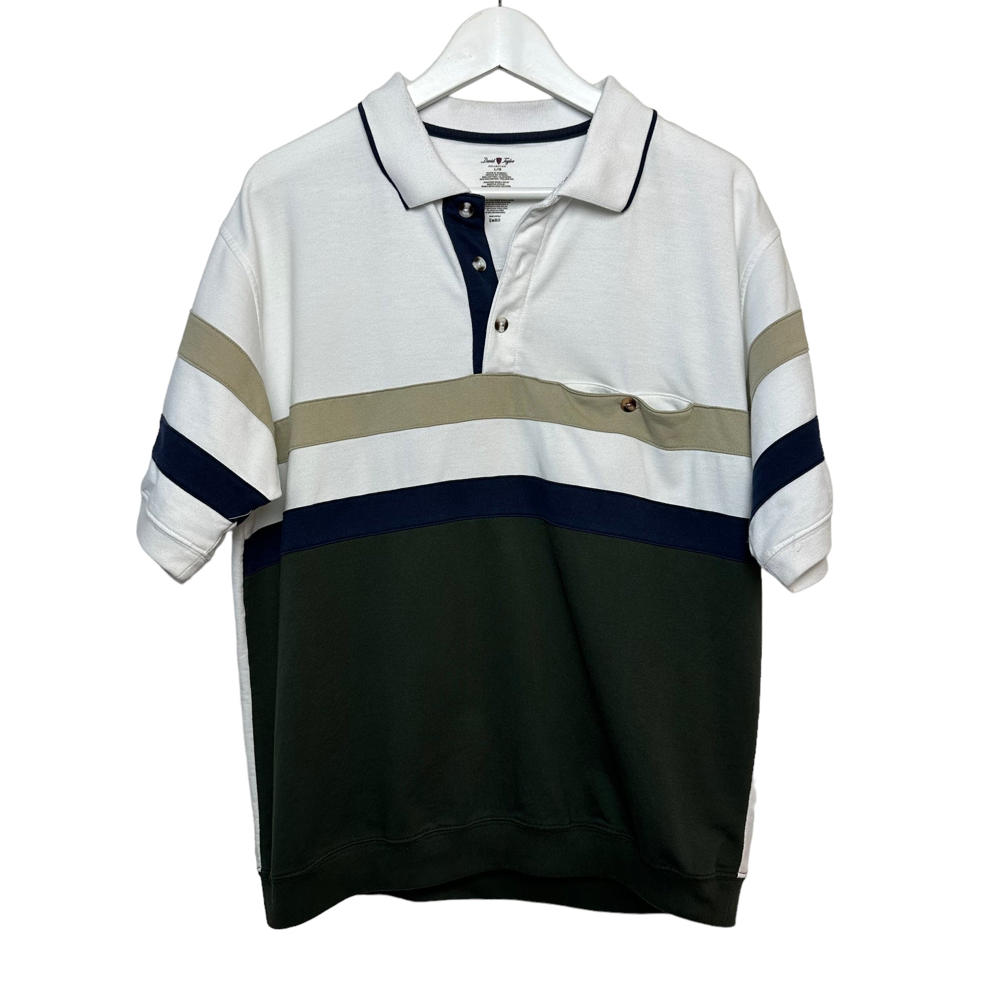 Retro David Taylor Polo Shirt Bold Striped Green White Banded Bottom Large